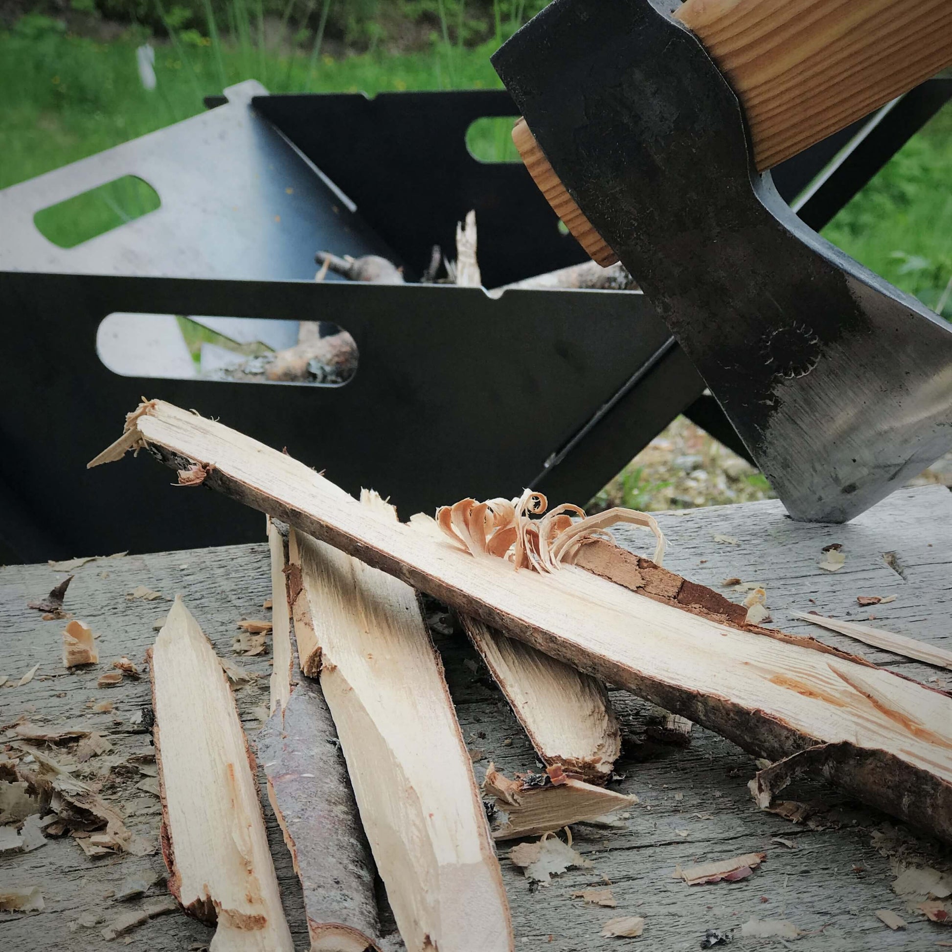 Flattie Flat-Pack Fire Pit, folds down ultra flat and compact with integrated carry handle. Keep warm and cook meals without shovelling out a pit first. The included removable grill plate for holding cookware can be used in either orientation.